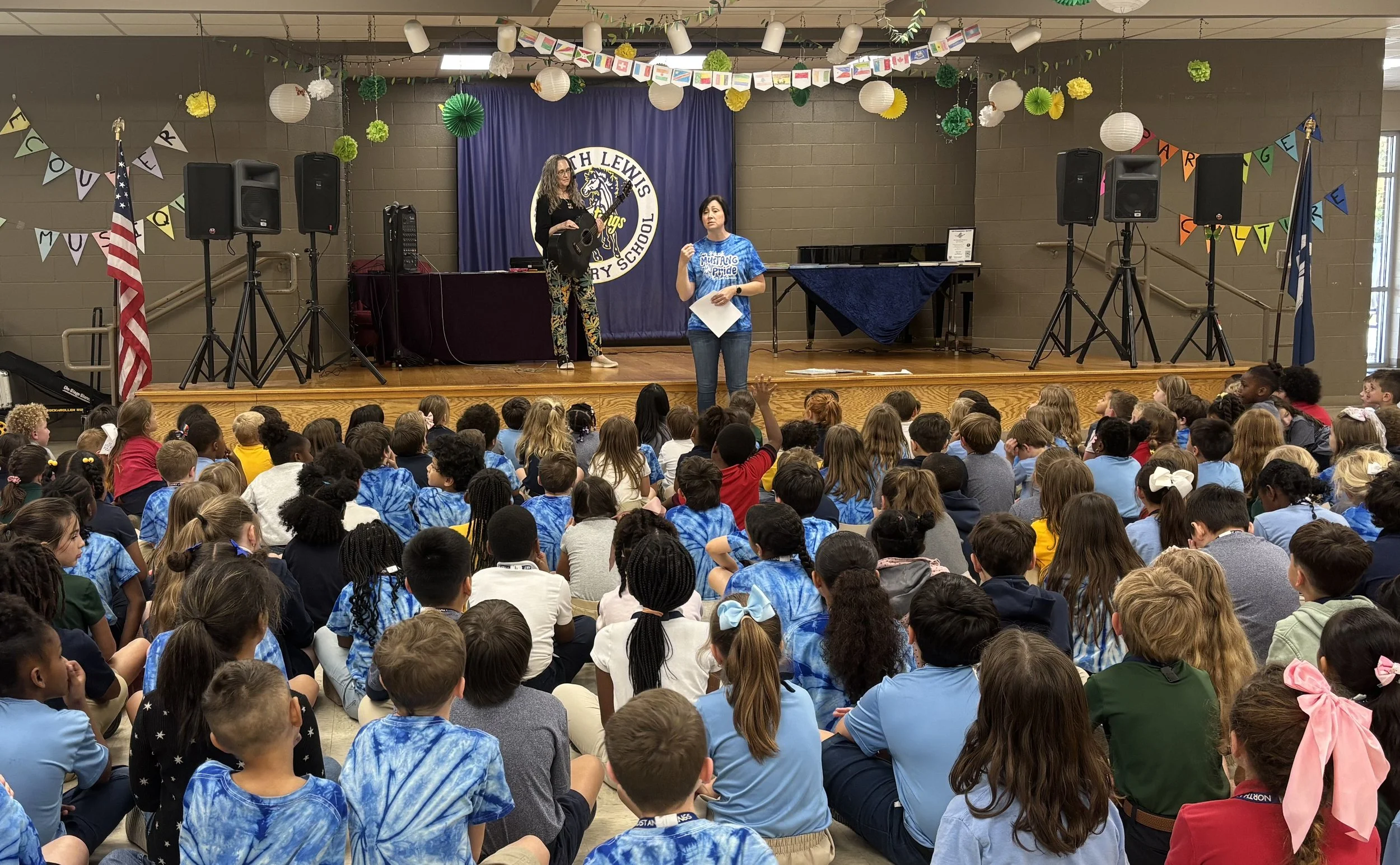 NLE were delighted to welcome Johnette Downing to the school, where she spent a joyful time singing and reading stories, such as "My Parrain is The Loup Garou," and “Today Is Monday in Louisiana” to our Pre-K through 2nd-grade students. Her lively performance brought smiles, laughter, and plenty of participation from the children, who eagerly joined in the fun. Even the teachers couldn’t resist getting involved, making it a truly special moment shared by our entire school community. Thank you to NLE librarian, Ms. Sarah, for organizing this wonderful event.